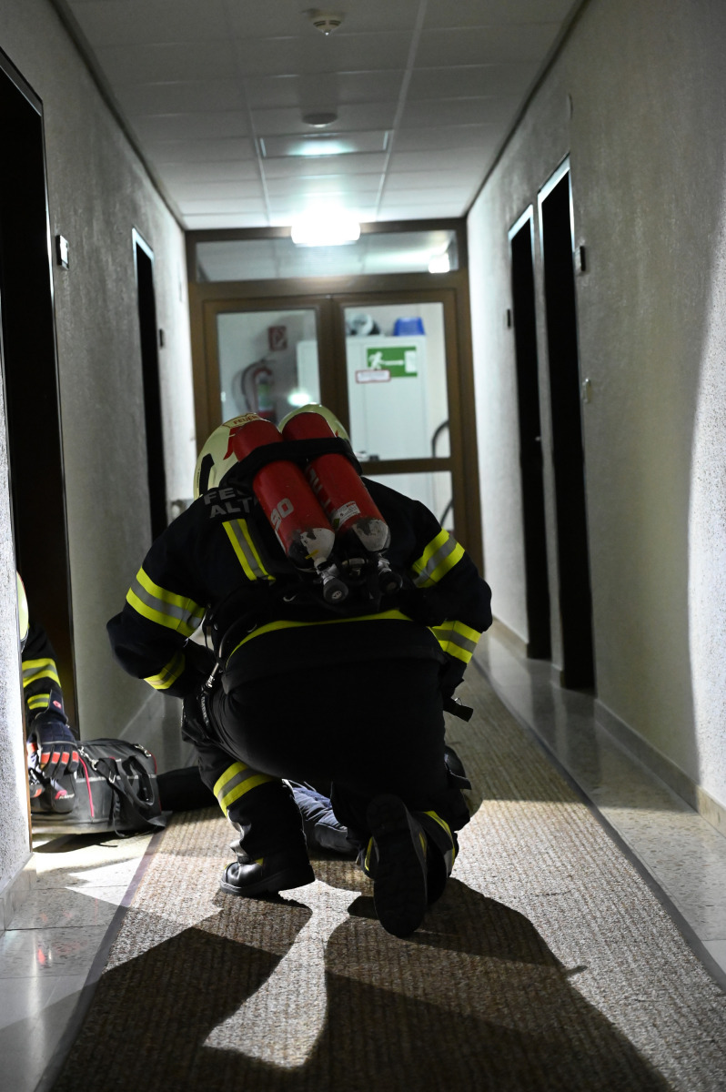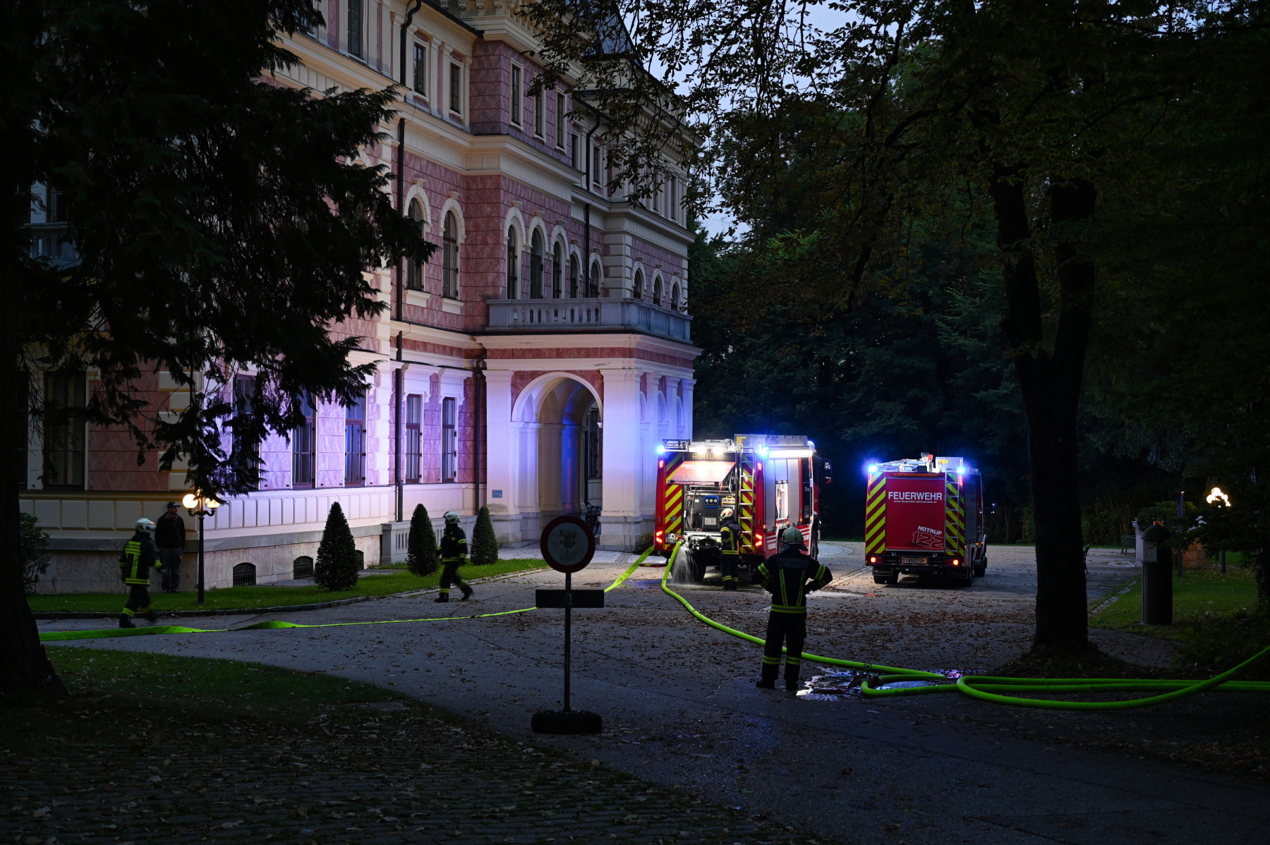 Zudem wurde beim Schloss eine Löschleitung mit sieben Schlauchlängen aufgebaut. Zeitgleich suchte ein Atemschutztrupp in den Internatsräumen nach einer vermissten Person, die als Dummy versteckt war. Dieser wurde erfolgreich geborgen.