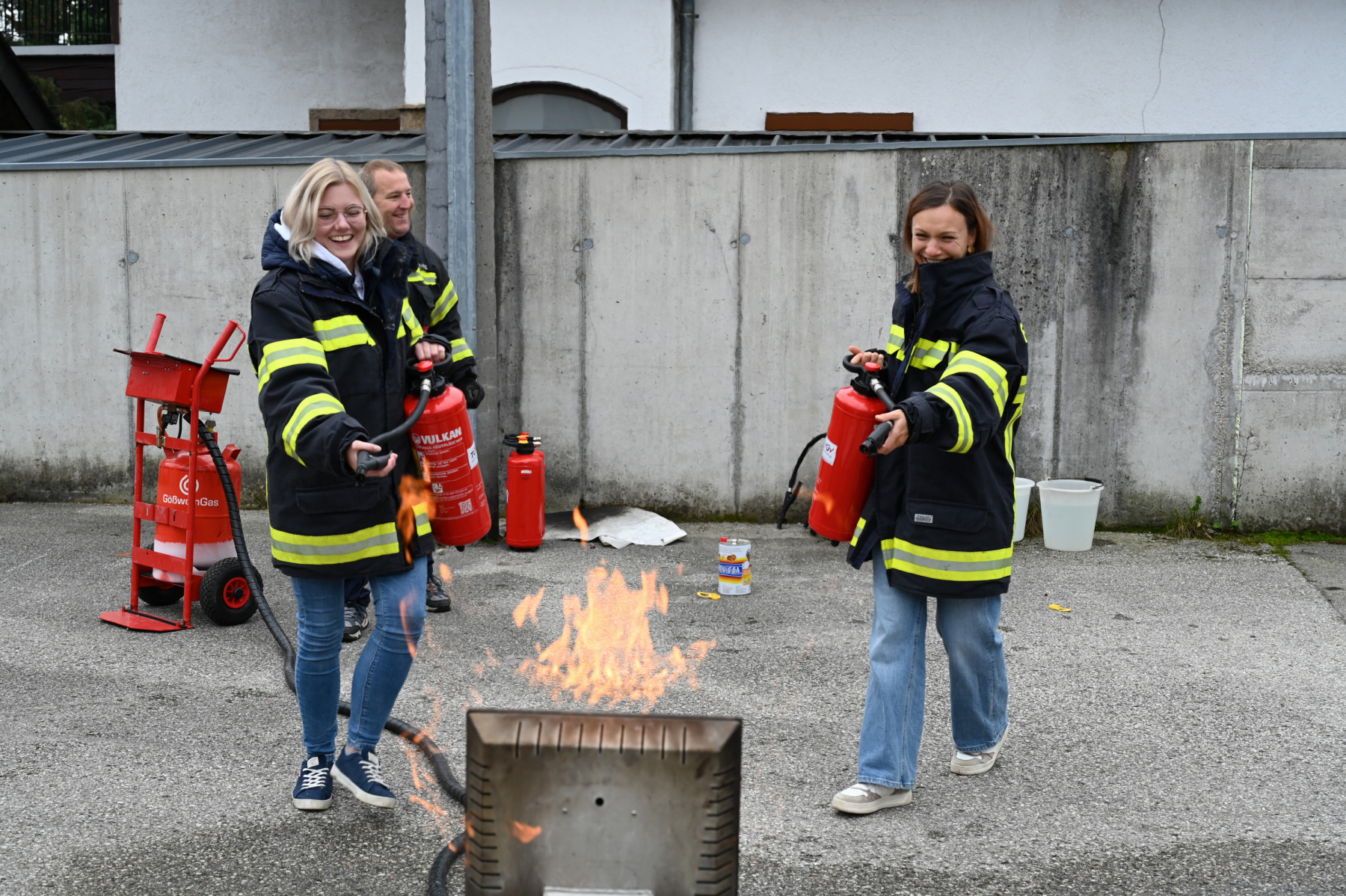 Die Besucher konnten weiterhin selbst aktiv werden. Nach einer fachgerechten Schulung durften sie Feuerlöscher bedienen und ein kleines Feuer eigenhändig löschen. So entstand ein greifbares Erlebnis, das Wissen in Sicherheit verwandelte.
