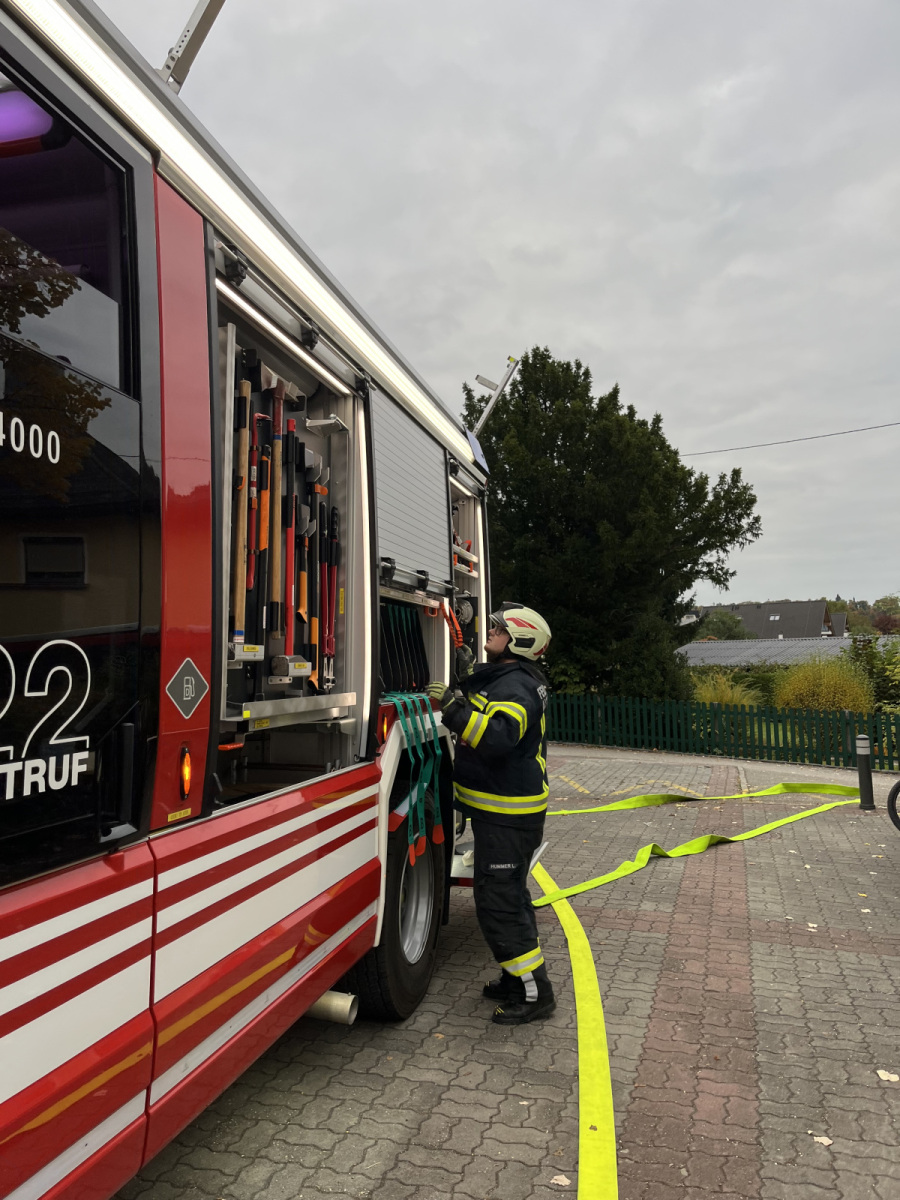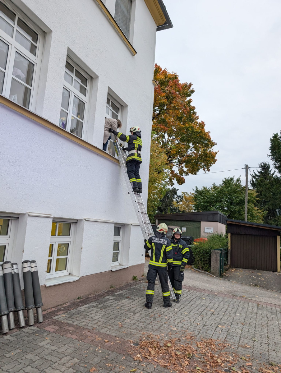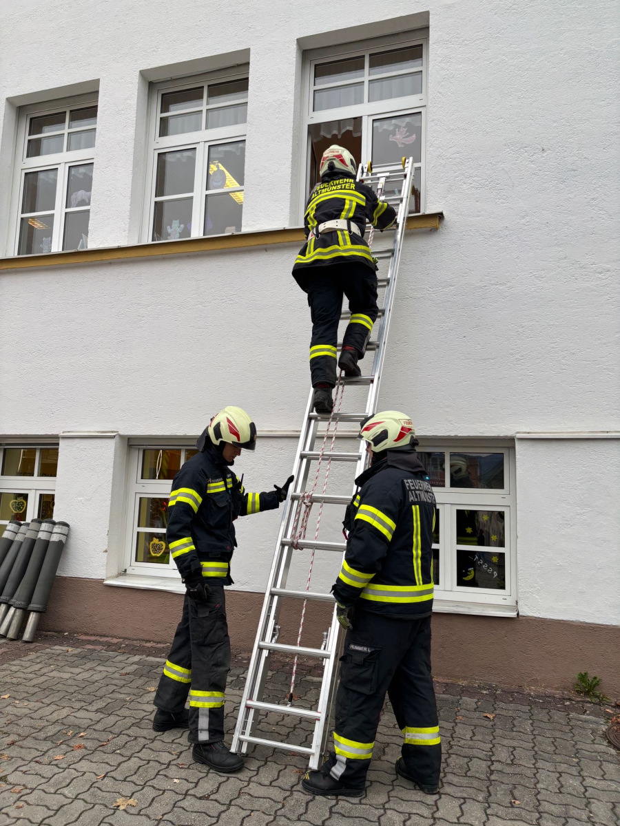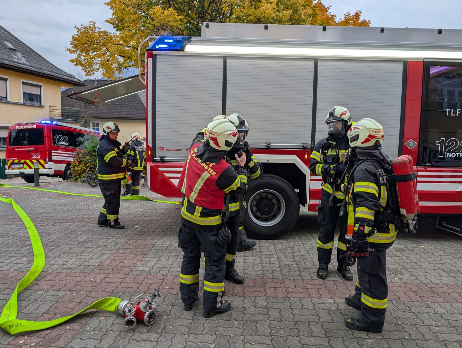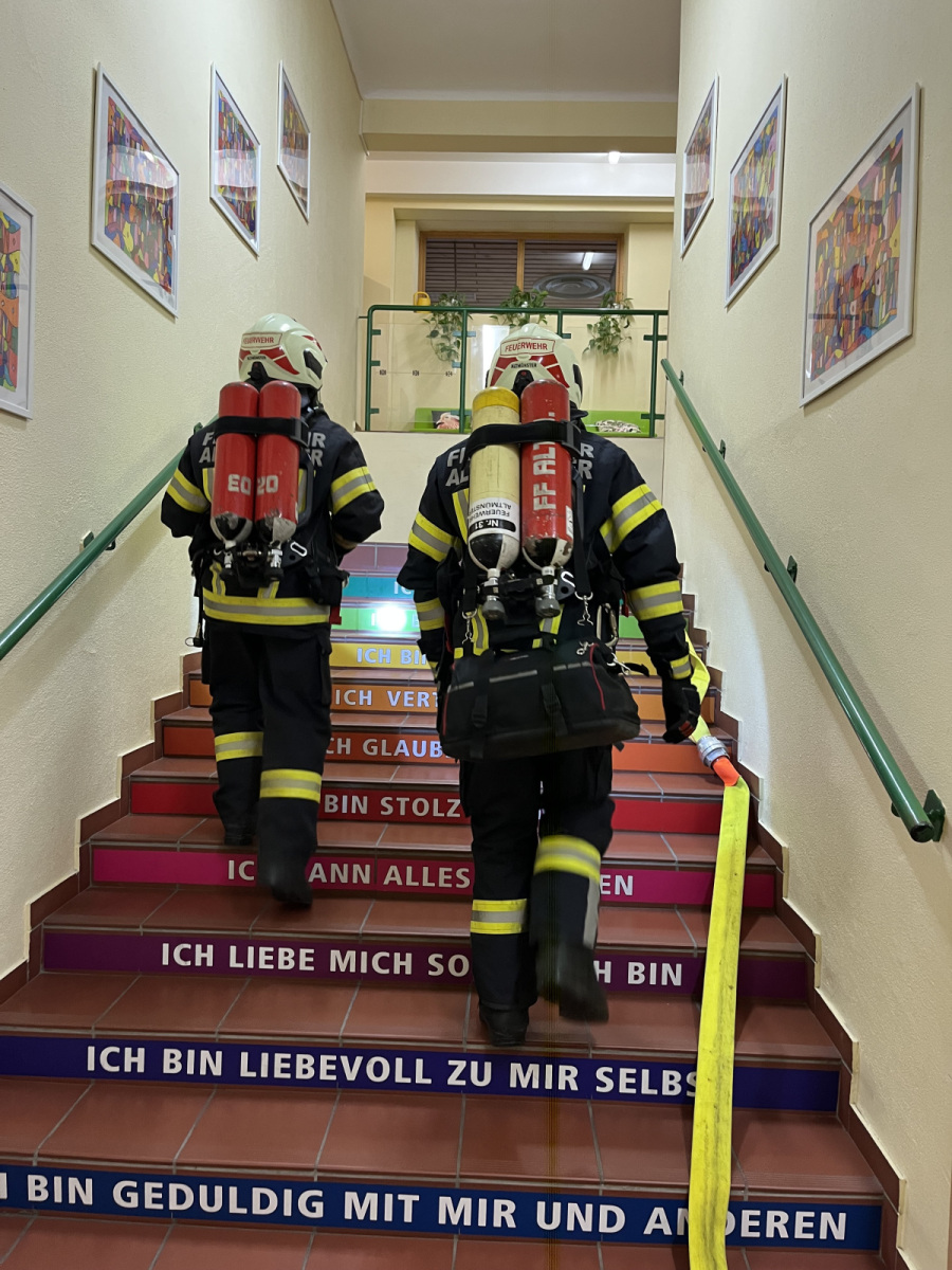 Es galt einige Kinder inklusive Lehrpersonal, welche in ihrem Klassenzimmer eingeschlossen waren, durch einen Atemschutztrupp mit Hilfe von Fluchthauben ins Freie zu bringen. Weiters wurde eine weitere erwachsene Person, welche sich im 1. Stock am Fenster bemerkbar machte, mittels Schiebeleiter gerettet. Währenddessen wurde nebenbei die Wasserversorgung vom Hydranten hergestellt und unser neuer Akkulüfter zur anschließenden Belüftung des Gebäudes vorbereitet.