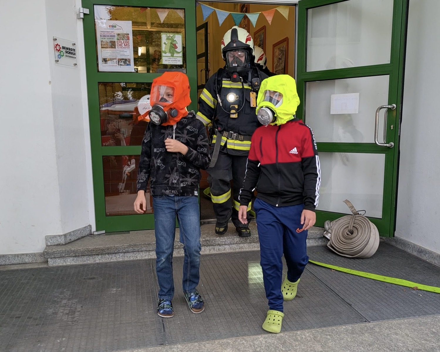 Gestern Freitag durften wir erneut die VS in Altmünster besuchen. Nach der ersten Räumungsübung im Frühjahr, wo nur zwei Kameraden unserer Feuerwehr vor Ort waren und die richtige Durchführung beobachteten, folgte heute eine kleine Einsatzübung.