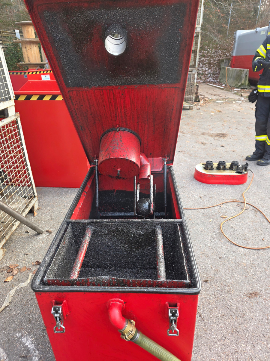 Beim Eintreffen der Einsatzkräfte befand sich das Gerät bereits im Freien und war von der Stromversorgung getrennt. Zudem war das betroffene Aggregat bereits teilweise zerlegt, um eine weitere Gefährdung zu verhindern. So konnte auch verschmorte Teile erkannt werden.