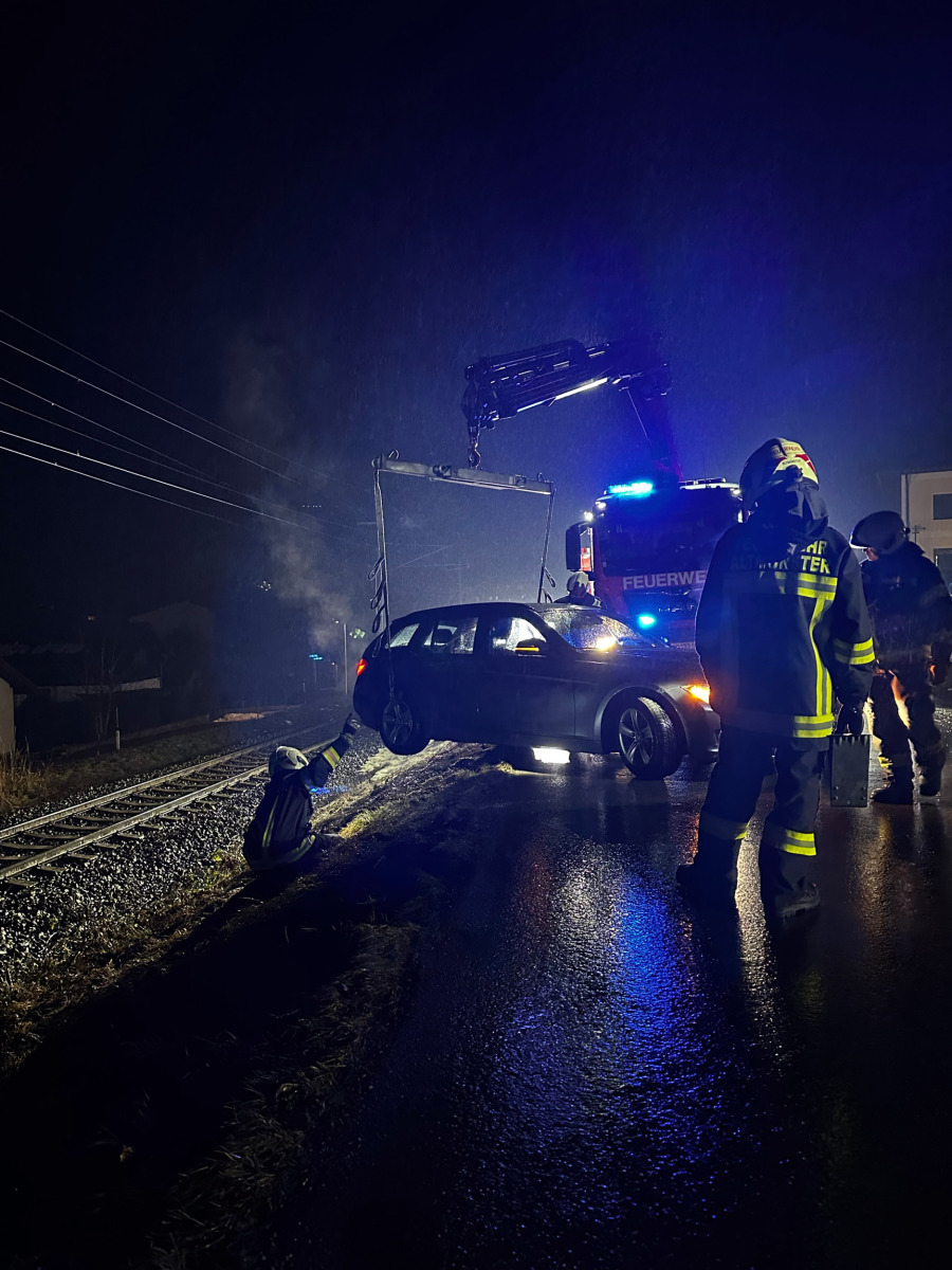 Noch während der Winterschulung am Freitag kam eine Alarmierung zur Fahrzeugbergung. In der Kalvarienbergstraße kam ein PKW ins Rollen und blieb an der Bahnböschung hängen. Mittels Kran unseres WLF konnte das Fahrzeug unversehrt wieder auf die Straße gehoben werden. So konnte der Lenker anschließend die Fahrt fortsetzen und wir nach kurzer Zeit wieder einrücken, um am weiteren Verlauf der Winterschulung teilnehmen.