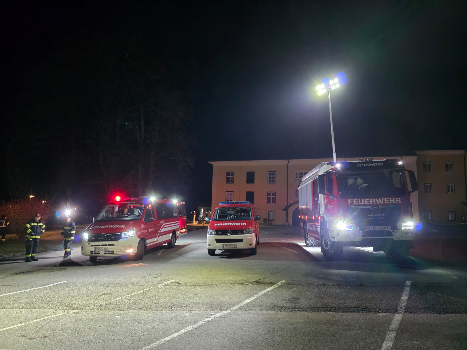 Die beiden weiteren Gruppen nahmen an einer praxisorientierten Übung teil: Eine Mannschaft arbeitete in der Zentrale, während die andere im Bereich Schloss Ebenzweier verschiedene Einsatzszenarien bewältigen musste. Dabei wurde besonders auf die Kommunikation zwischen den Teams geachtet. Mithilfe technischer Hilfsmittel wie PC, Laptop, Funk und Handy wurden die Szenarien gemeinsam abgearbeitet. Die ständige Synchronisation der Informationen sorgte dafür, dass beide Einsatzgruppen immer denselben Wissensstand hatten.