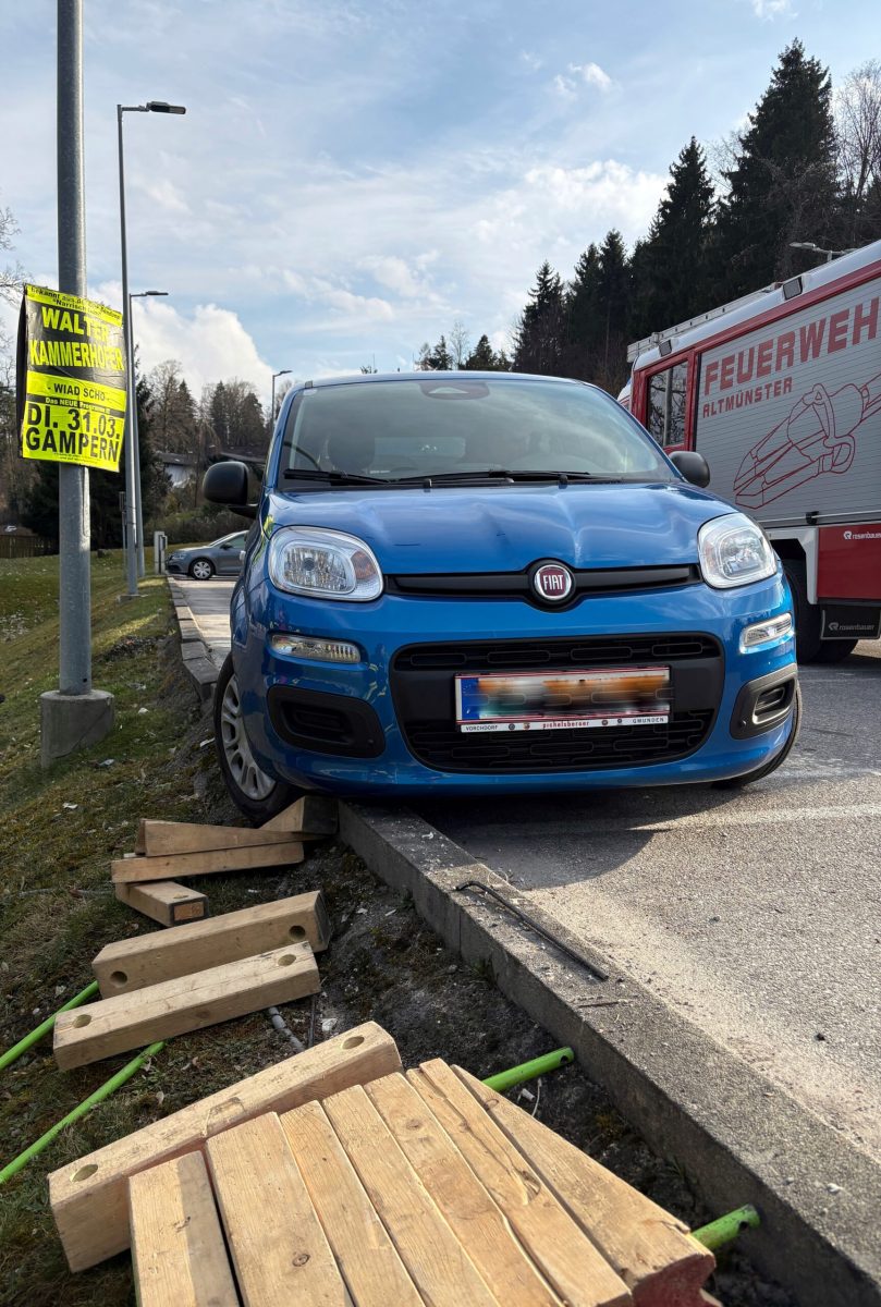 Ein PKW war auf dem Parkplatz eines Supermarktes über den Randstein geraten und konnte seine Fahrt nicht mehr fortsetzen.