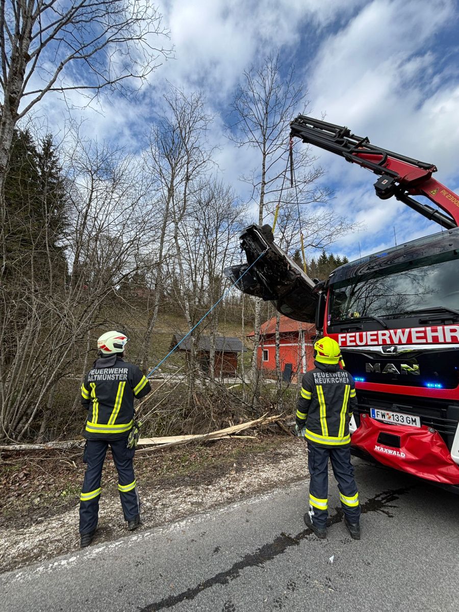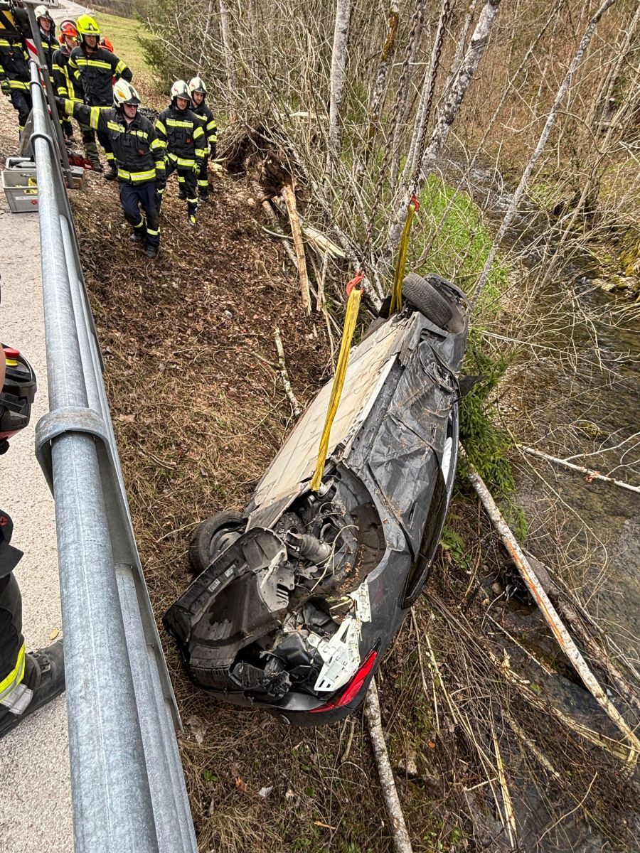 Heute Ostermontag wurden wir um ca. 13:00 Uhr zu einer Fahrzeugbergung alarmiert. Im Bereich Großalm kam ein PKW aus ungeklärter Ursache von der Fahrbahn ab, touchierte eine Baumgruppe und kam im angrenzenden Bachbett zu liegen. Zur Unterstützung der FF Neukirchen kamen wir mit unserem WLF zur Hilfe. Nach dem Entfernen einiger kleineren und größeren Äste konnte das Elektrofahrzeug auf die Fahrbahn gehoben und dem Abschleppdienst übergeben werden. Für die Durchführung der Bergungsarbeiten musste die Großalm-Landesstraße teilweise gesperrt werden.