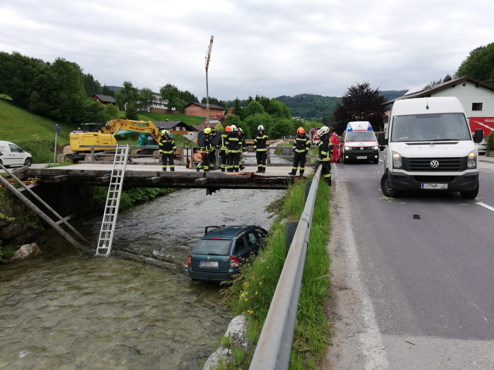 Aus nicht geklärter Ursache kam es am 21.5.2019 um ca. 8:30 Uhr in Reindlmühl, auf der Aurachtal-Landesstraße zu einer Kollision zwischen einen Lieferwagen und einem PKW. Dieser durchbrach ein Brückengeländer und wurde in weiterer Folge in die Aurach geschleudert. Dabei wurde der Fahrer unbestimmten Grades verletzt, vom Notarzt und dem Team des Roten Kreuz versorgt, sowie weiters in das Salzkammergut Klinikum Gmunden gebracht.