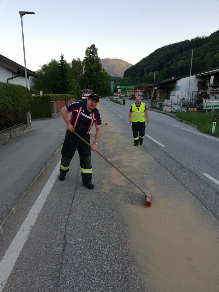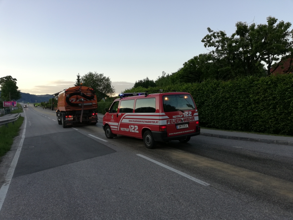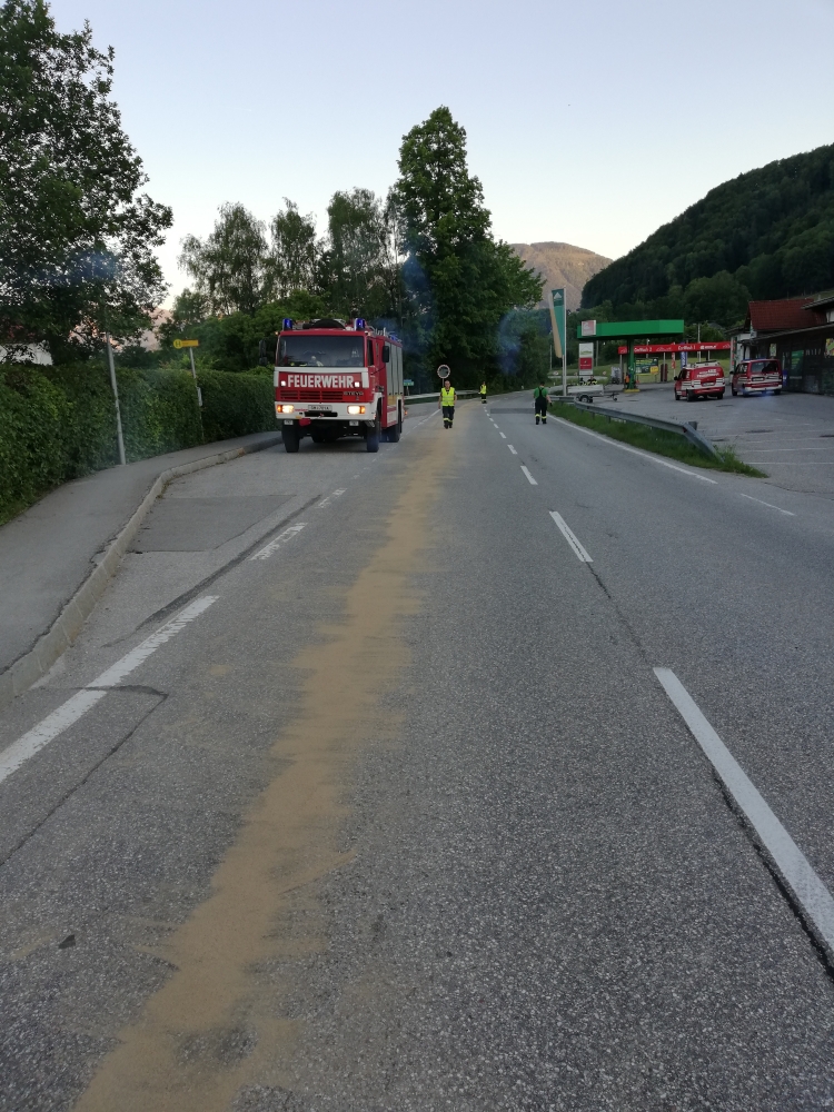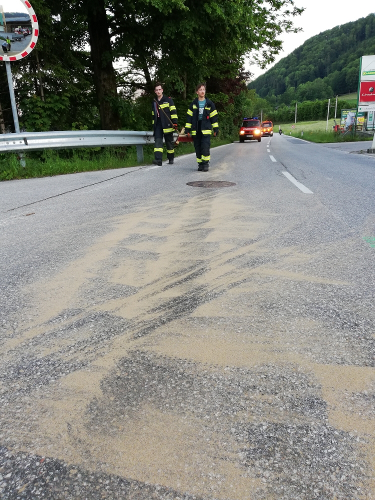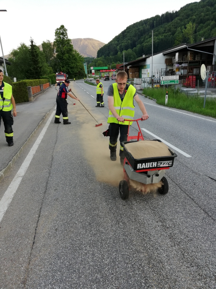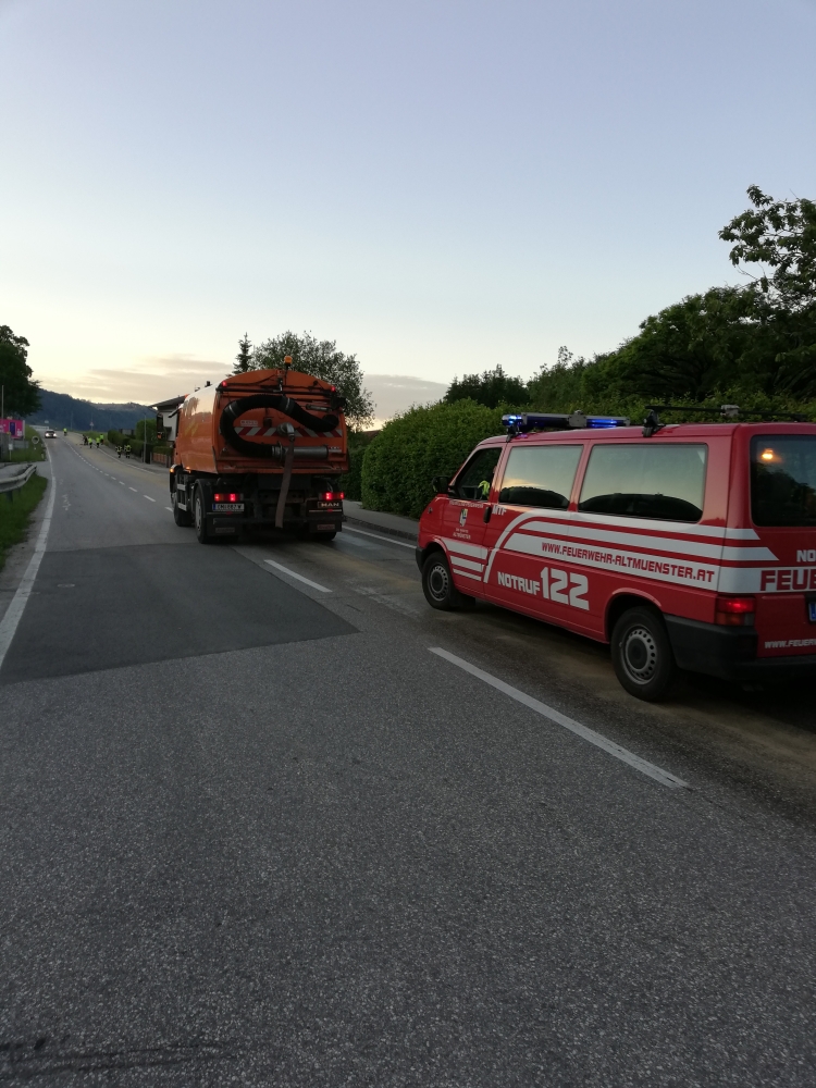 Die Feuerwehr Altmünster wurde um 19:25 Uhr alarmiert, um die Ölspur zu entfernen. Für die Reinigungsarbeiten musste die Landesstraße für den gesamten Verkehr immer wieder gesperrt, bzw. örtlich umgeleitet werden.