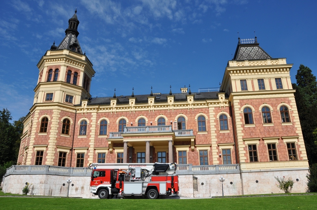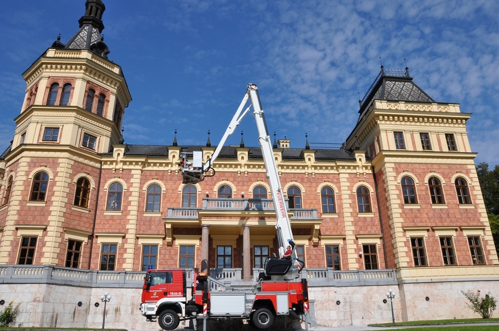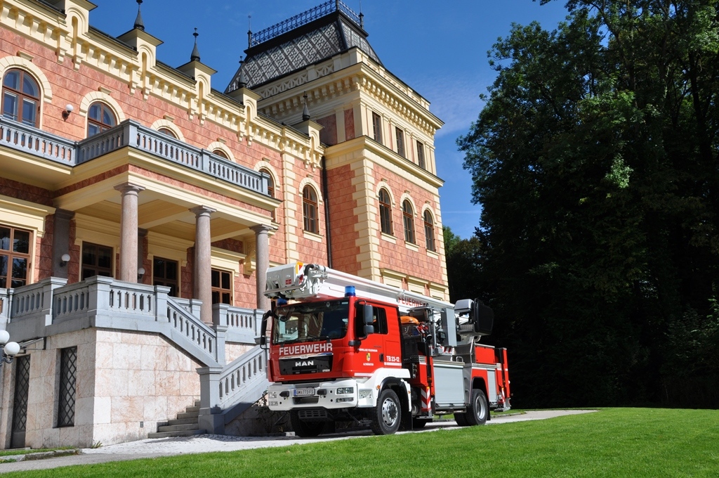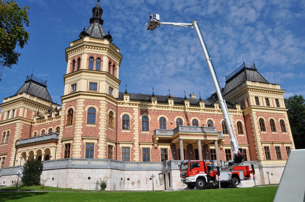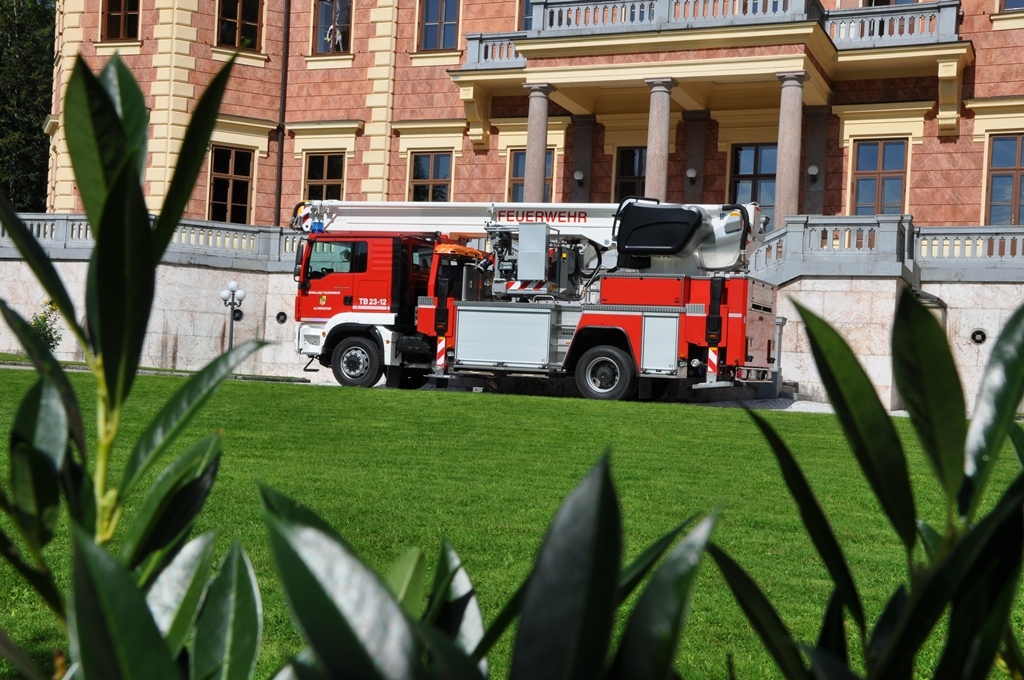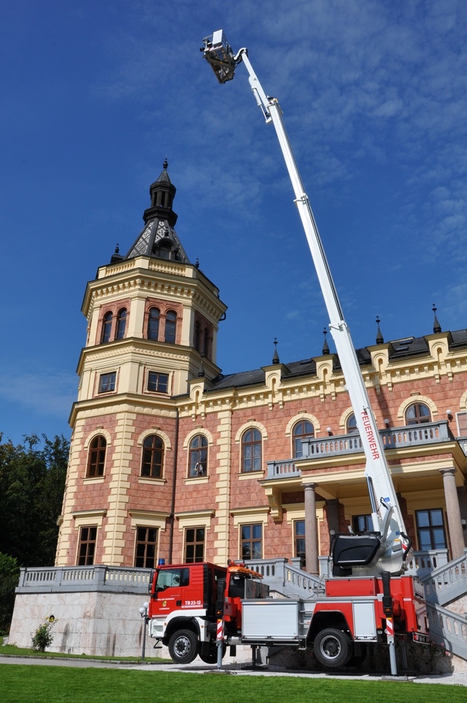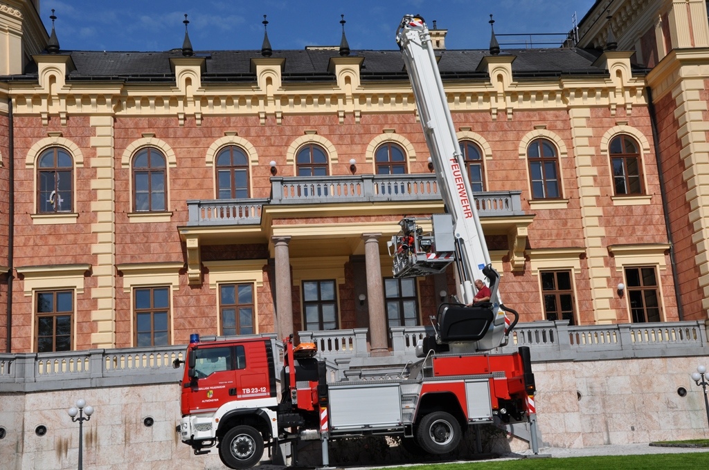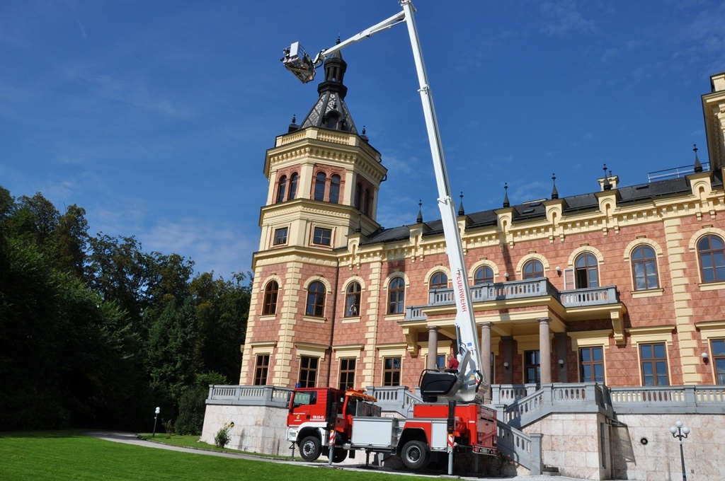 Korblast 500 Kg, Wasserwerfer mit Kamera am Korb, Bodendüsen am Korb für Selbstschutz, Abseilwinde für Personenrettungen im Korb, Rettungstragemontage am und im Korb möglich.