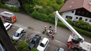 Da die Versorgung des Patienten 😷 bereits durch den Rettungsdienst erfolgte, konnten wir die Person 🚶🏽rasch mithilfe unserer Teleskopmastbühne🚒 aus dem 4.Stock retten und anschließend dem Roten Kreuz übergeben.👍🏻