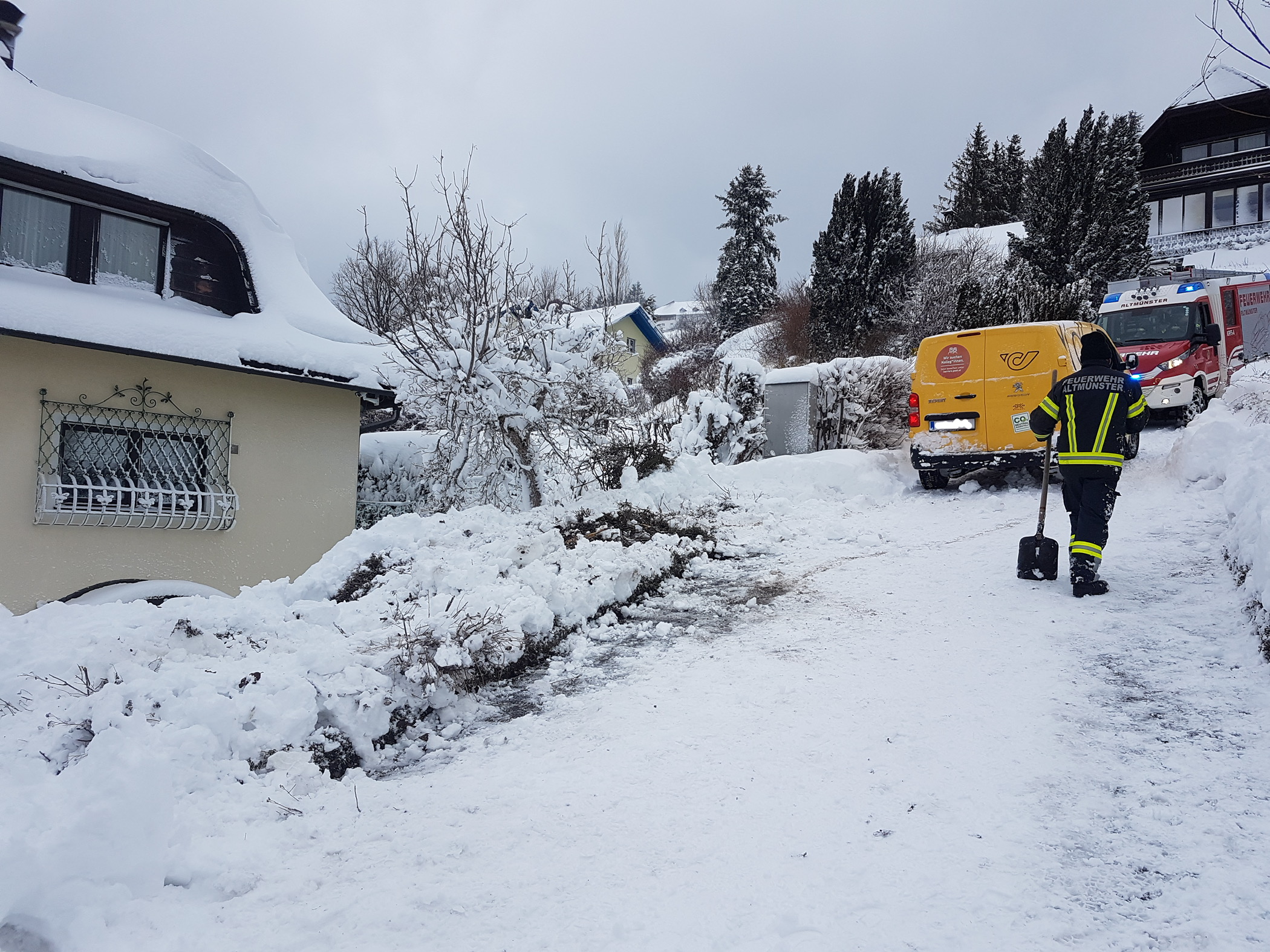 Heute Mittag, kam ein Paketzusteller aufgrund winterlicher Fahrverhältnisse von der Fahrbahn ab.❄️ Mittels Seilwinde konnte das Fahrzeug rasch geborgen werden. 💪🏻🚒