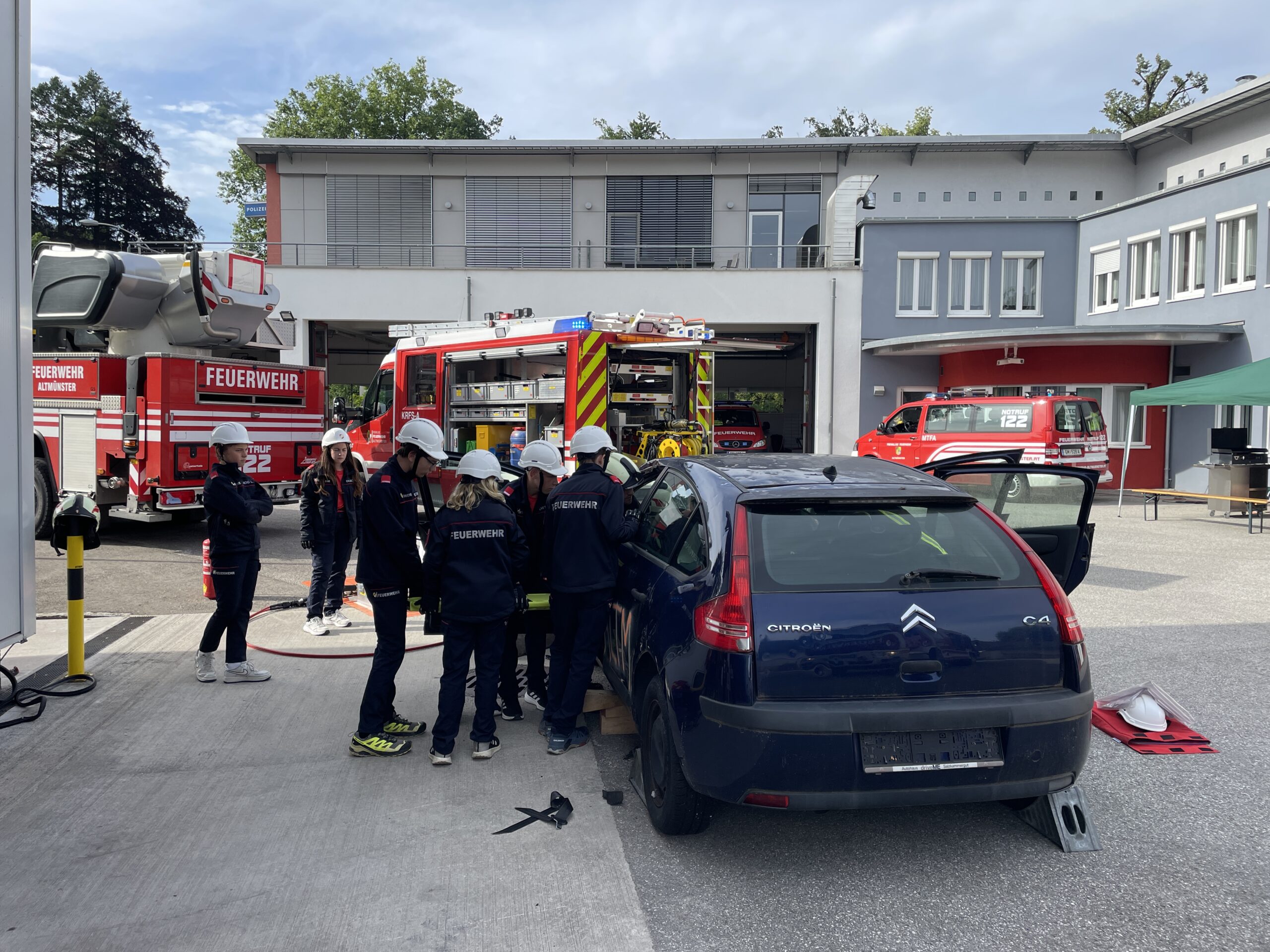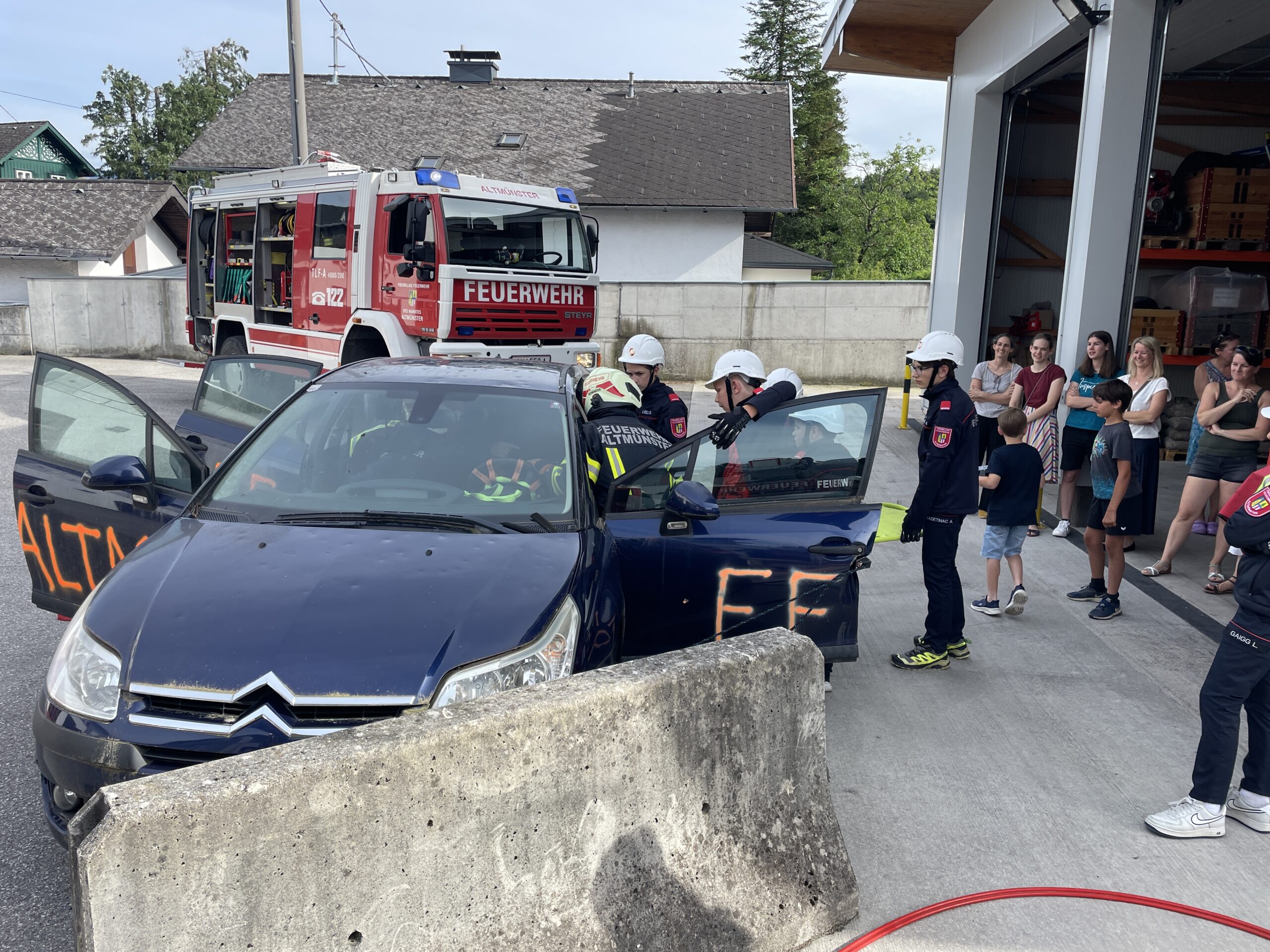 Die Übung simulierte einen Verkehrsunfall, bei dem eine Person im Fahrzeug eingeklemmt war. Die Jugendlichen zeigten ihre erlernten Fähigkeiten, indem sie die verletzte Person professionell und sicher aus dem Fahrzeug befreiten. Das Szenario bot den Eltern einen beeindruckenden Einblick in die Arbeit der Jugendgruppe und die Bedeutung ihrer Ausbildung.