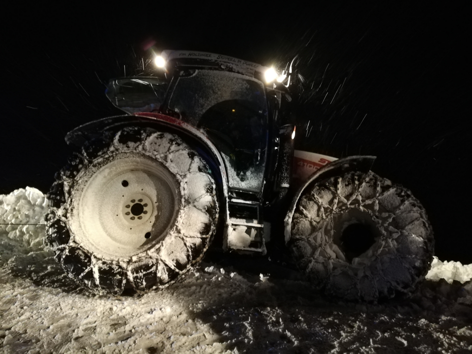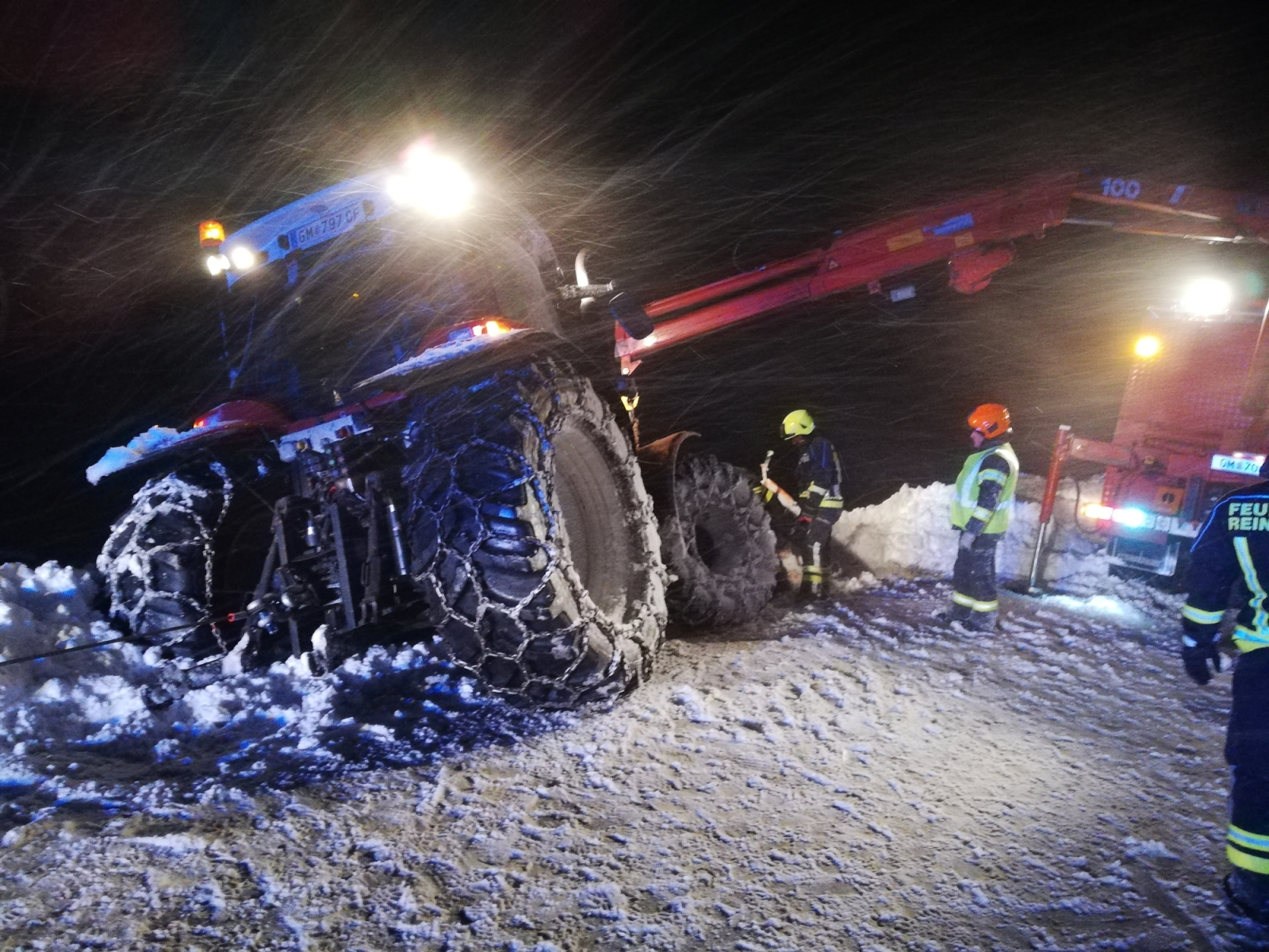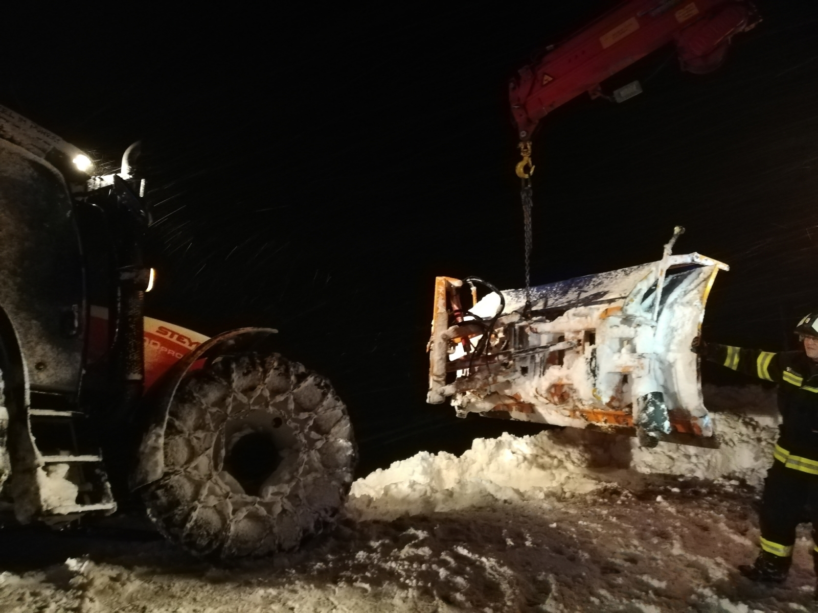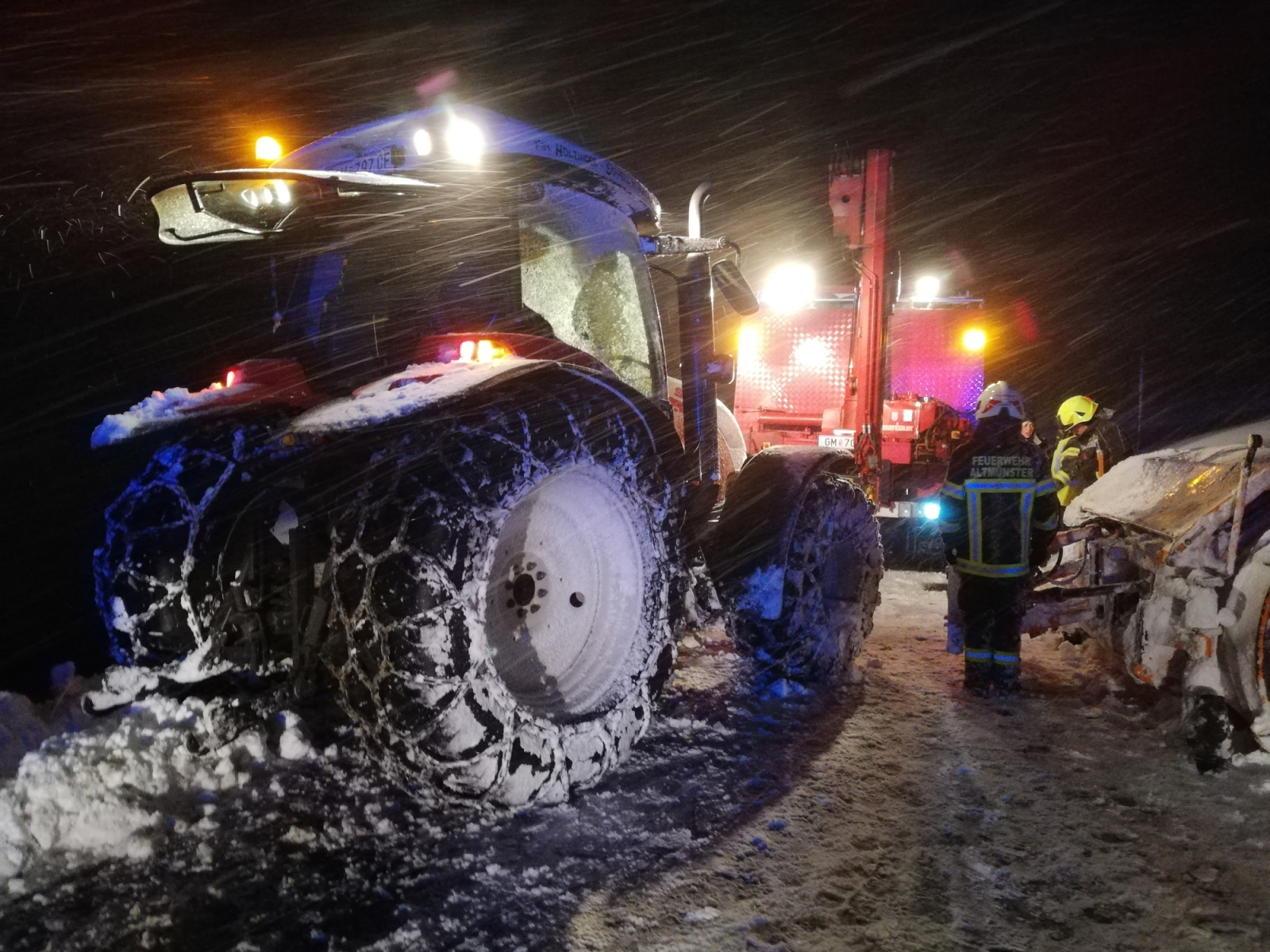 In den Abendstunden des 5.1.2019 fuhr ein Räumtraktor im Auftrag der Gemeinde vom Gmundnerberg talwärts. Aufgrund des starken Schneetreibens kam dieser von der Straße ab und blieb in den großen Schneemengen stecken.