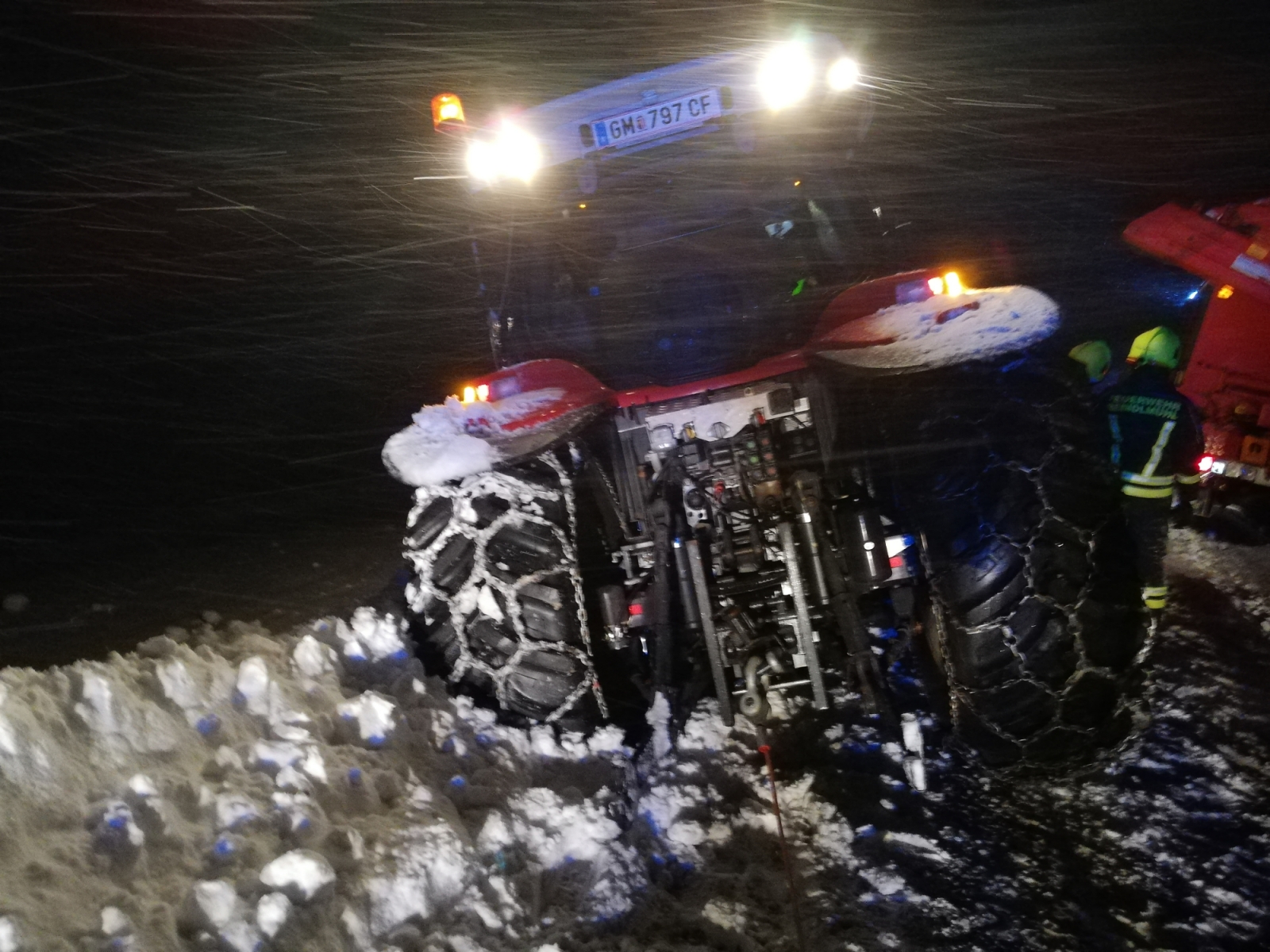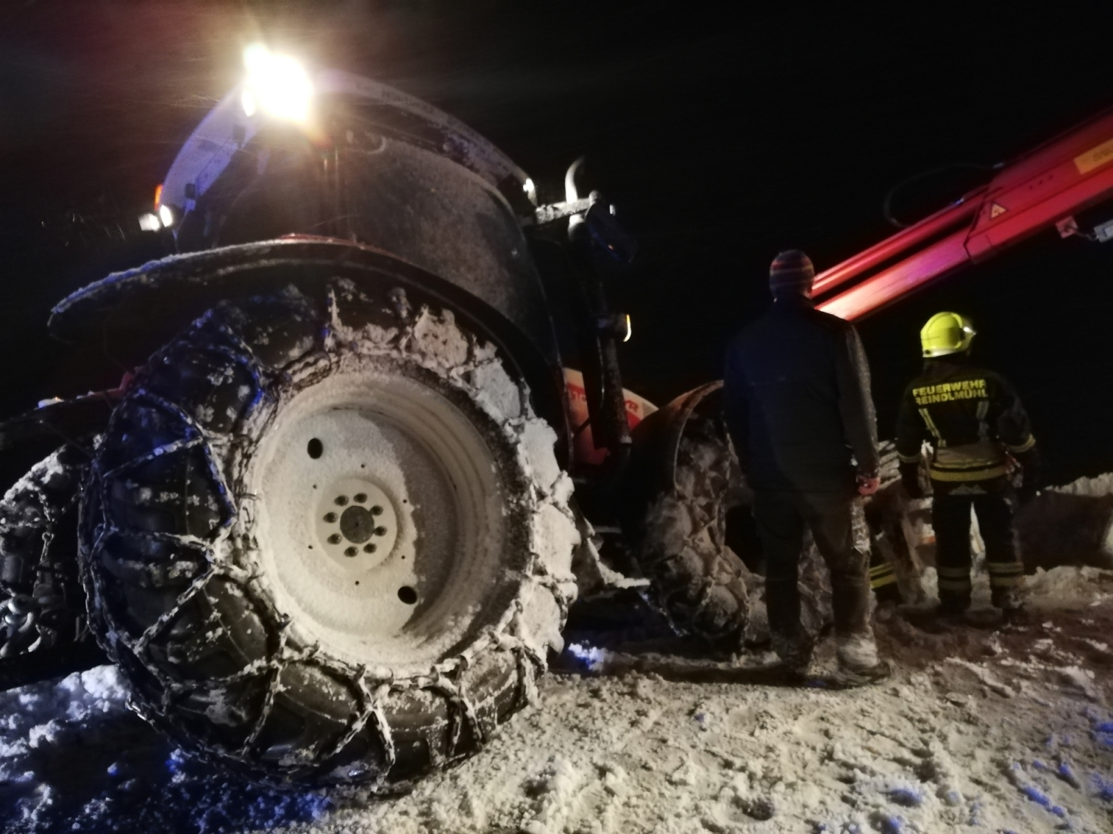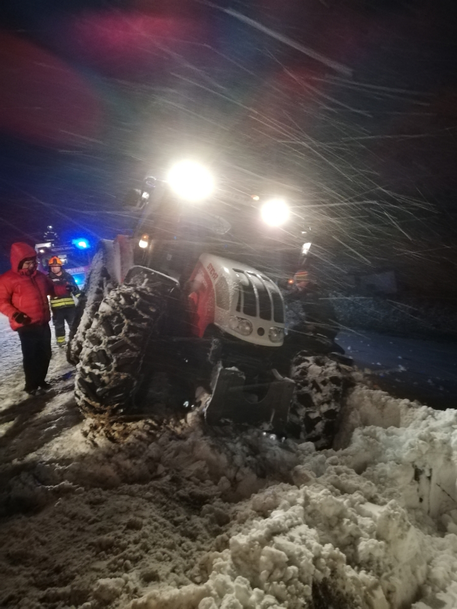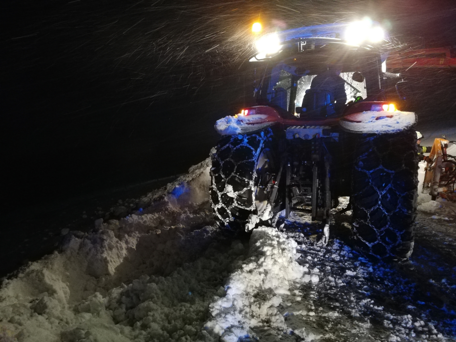 In den Abendstunden des 5.1.2019 fuhr ein Räumtraktor im Auftrag der Gemeinde vom Gmundnerberg talwärts. Aufgrund des starken Schneetreibens kam dieser von der Straße ab und blieb in den großen Schneemengen stecken.
