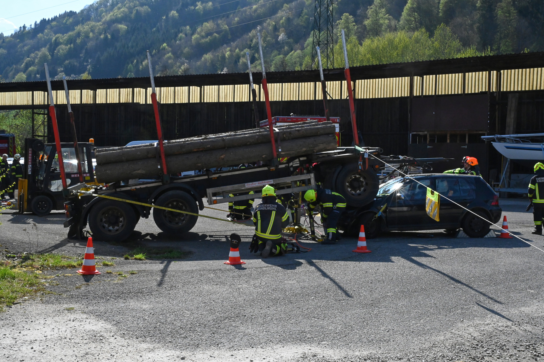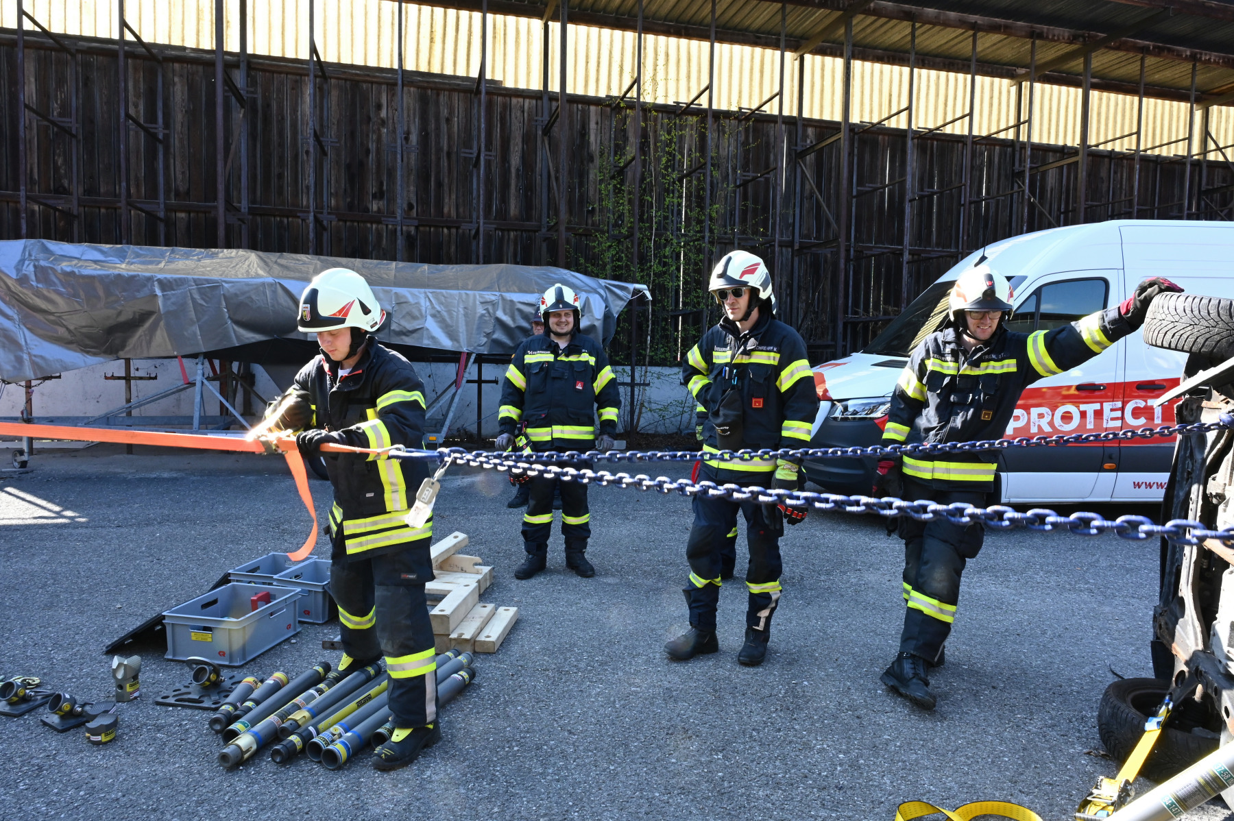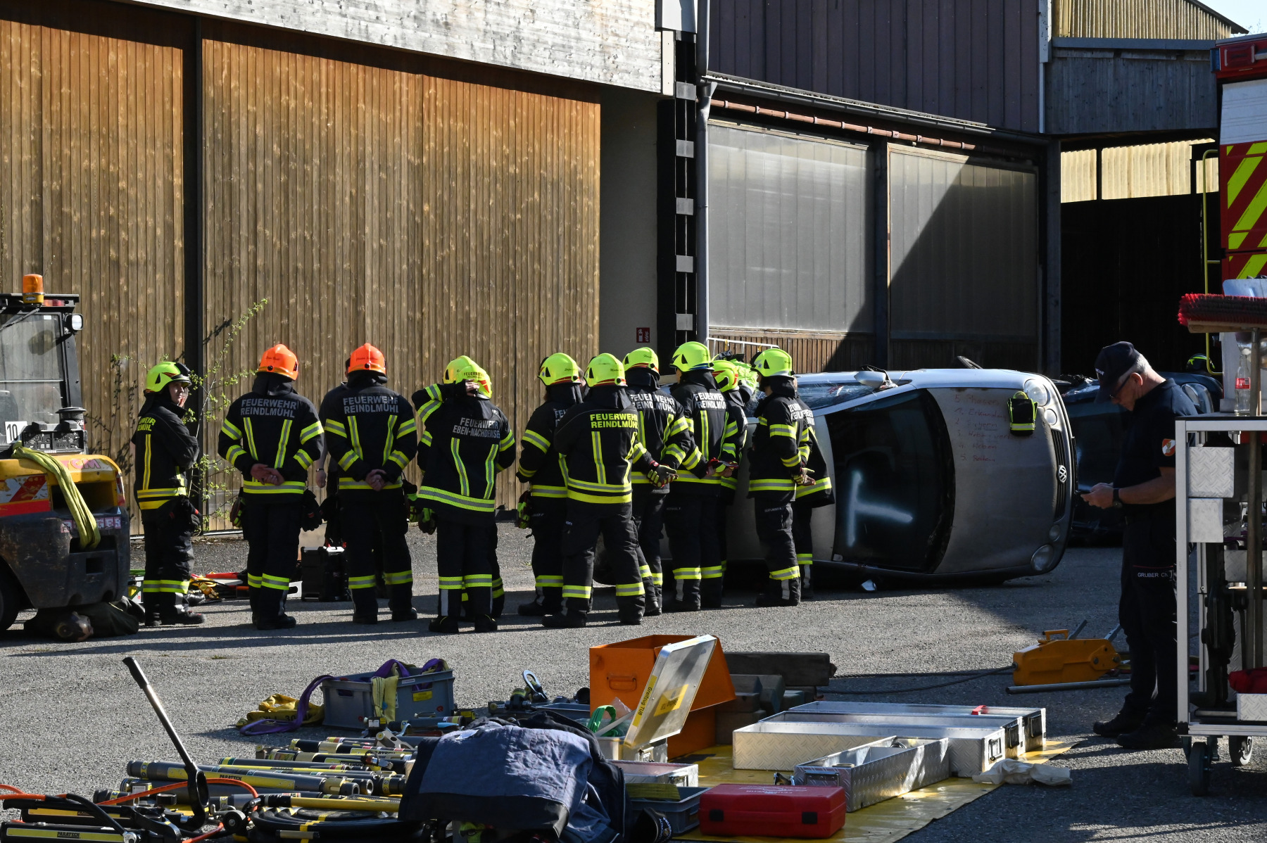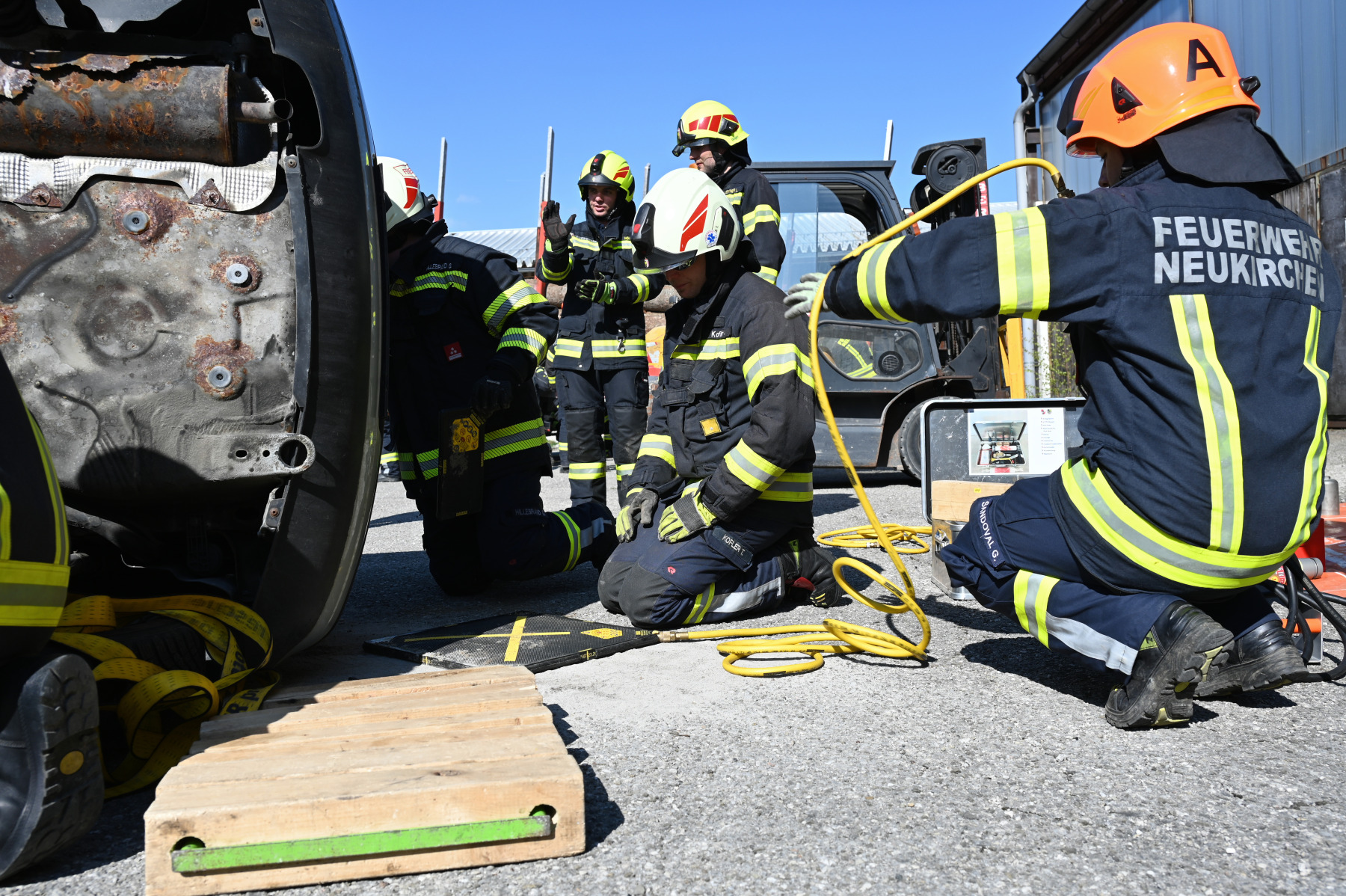 Im praktischen Teil wurden die Kameraden in gemischte Teams aufgeteilt, um die Zusammenarbeit zwischen den verschiedenen Wehren realitätsnah zu trainieren. Die Szenarien reichten von einem auf einem Auto lastenden Holzanhänger bis hin zu Personenrettungen unter Gabelstaplern oder verunfallten Fahrzeugen in Dachlage. In diesen Momenten griffen die Zahnräder der Kameradschaft perfekt ineinander und verwandelten die Theorie in sicheres Handeln. Das System gilt als besonders fehlerverzeihend, dennoch mussten alle Sicherheitsvorschriften des ÖBFV strengstens beachtet werden. Es ging an diesem Nachmittag explizit nicht um Schnelligkeit, sondern um die Perfektionierung der Technik und das Aufbrechen gewohnter Routineabläufe. Die Einsatzkräfte mussten wie ein organisiertes Team agieren, bei dem jeder Handgriff den nächsten stützt und zum Erfolg führt.