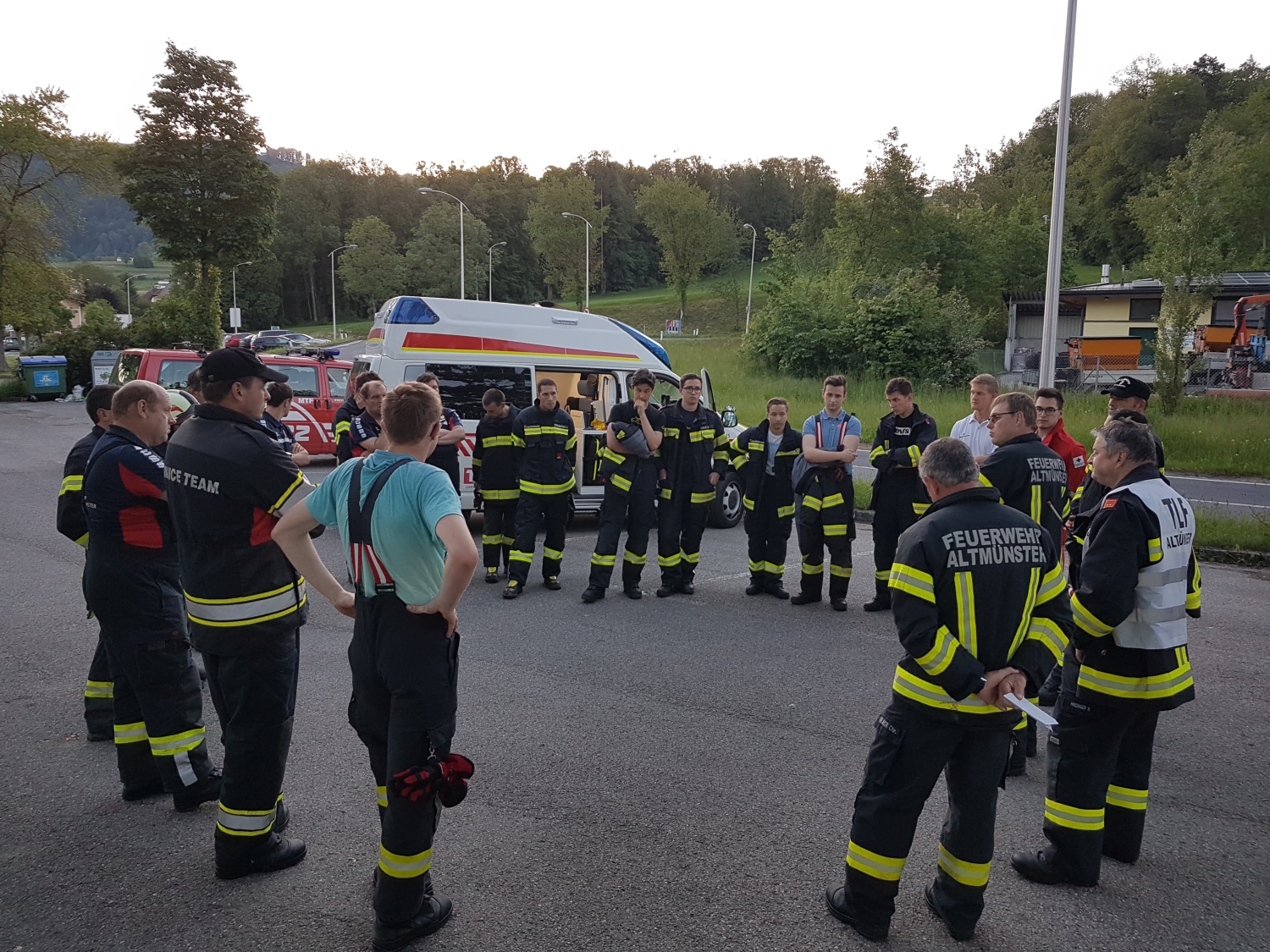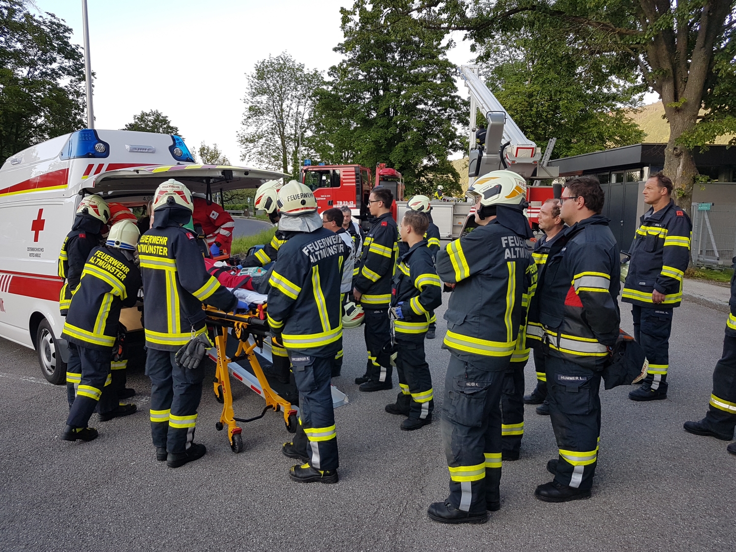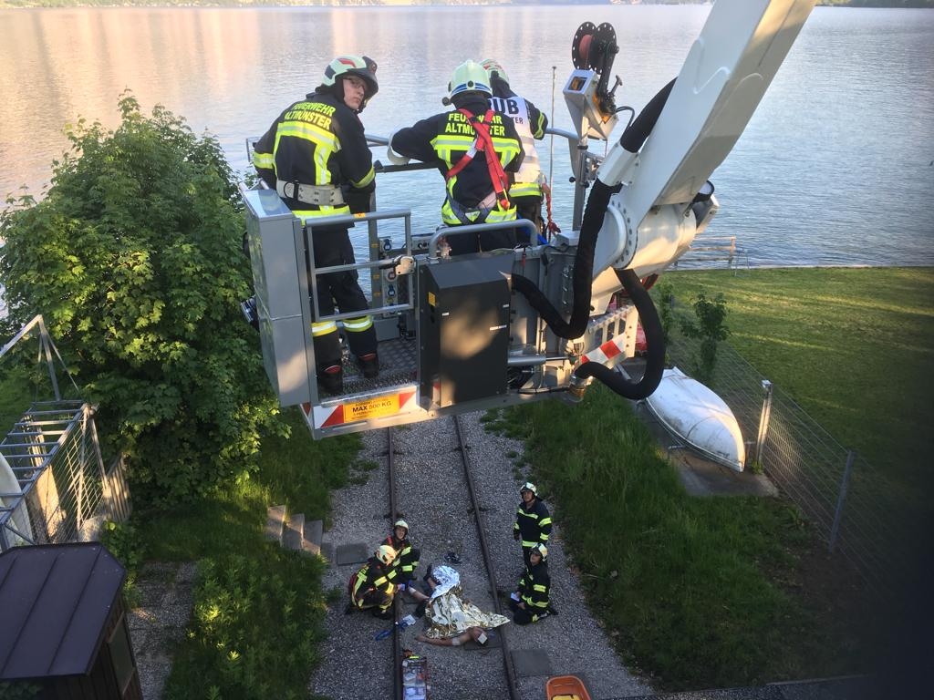 Am Freitag, den 24.05.2019 gab es ein komplexes Übungsszenario abzuarbeiten. Übungsannahme war eine Personenrettung nach einem Absturz aus mehreren Metern Höhe. Übungsort war das Bootshaus der Feuerwehr Altmünster.