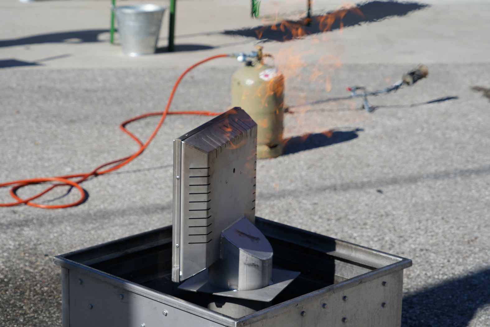 So konnten die Fragen: was mache ich wenn in den eigenen vier Wänden ein Mistkübel brennt, wenn plötzlich das Fett am Herd zu brennen beginnt, ein Akku von Elektrogeräten, Fahrrädern oder Laptop Feuer fängt? Womit kann ich selbst bis zum Eintreffen der Feuerwehr den Brandherd löschen oder zumindest eindämmen? Dies alles wurde anschaulich am heutigen Sicherheitstag besprochen und praktisch geübt. Ein Highlight war dabei der Fettbrandsimulator, bei dem ein Topf mit Fett/Öl zum Brennen gebracht wurde und dann, was man keines Falls machen darf, mit Wasser einen Löschversuch startet. Die dabei entstehende Explosion des Wasserdampfes erzeugt eine Riesenstichflamme, die im Wohnungsbereich einen Großbrand entstehen lassen würde. Die richtige Lösung ist bei kleinem Ausmaß einen Deckel auf das brennende Gefäß/Pfanne oder das Verwenden einer Löschdecke, Beides entzieht die Sauerstoffzufuhr und erstickt so die Flammen im Nu.