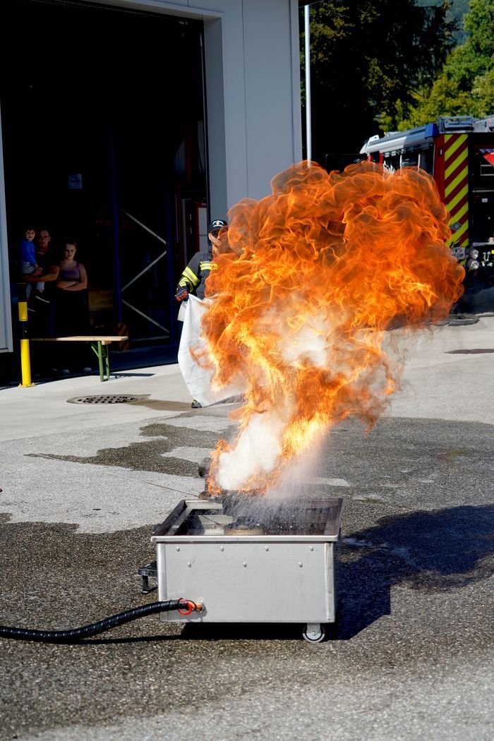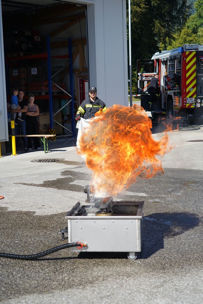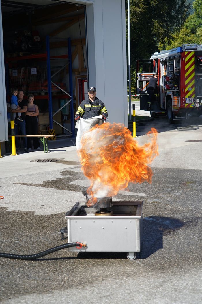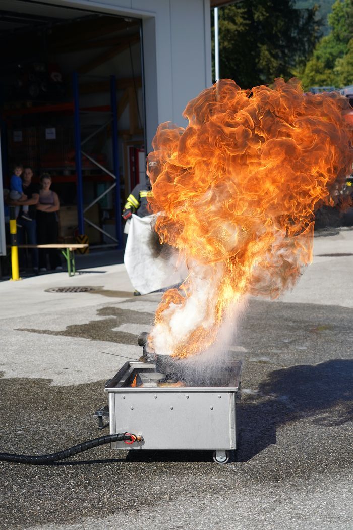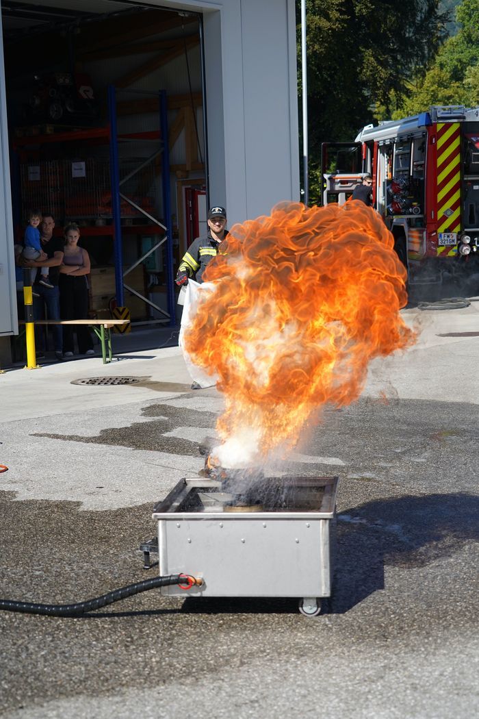 Am Samstag, 21.9.2024 ging es bei der Feuerwehr Altmünster heiß her! Es fand der Sicherheitstag mit spannenden Vorführungen und Erklärungen der Einsatzfahrzeuge statt. Der Kommandant der Feuerwehr Altmünster ABI Christian Gruber hat mit seinem professionellen Team verschiedene Stationen aufgebaut und es wurden verschiedene Brandarten wie Fettbrand, brennende Akkus von Fahrrädern und Laptop, Mistkübelbrand etc. incl. Löschvorgang durch,- und vorgeführt. Dabei gab es für die Besucher der Veranstaltung die Möglichkeit, einen Feuerlöscher unter Anleitung eines Feuerwehrkollegen selbst beim Löschvorgang zu bedienen.