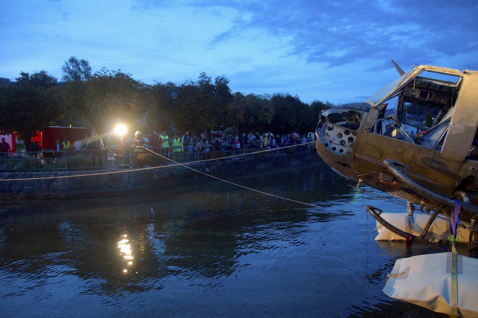 Stück für Stück bewegte sich das Fluggerät an die Wasseroberfläche und konnte mit einem Arbeitsboot ans Ufer geschleppt werden.